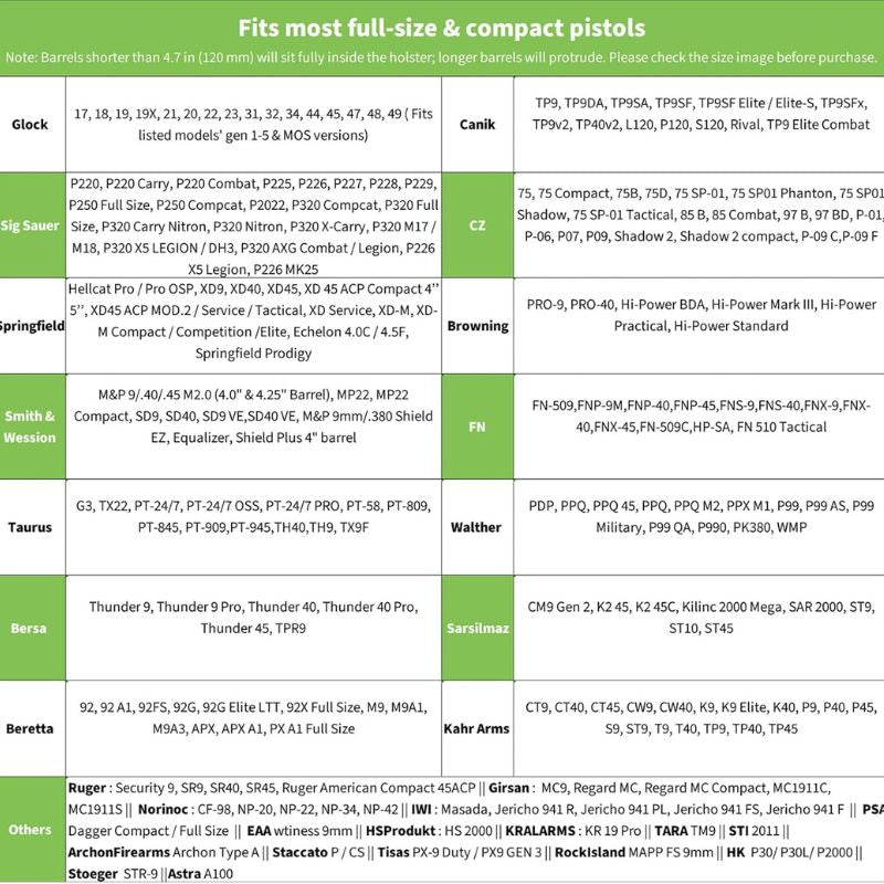 Compatible with 100+ Pistols | Secure Fit, Fast Draw, All-Day Comfort