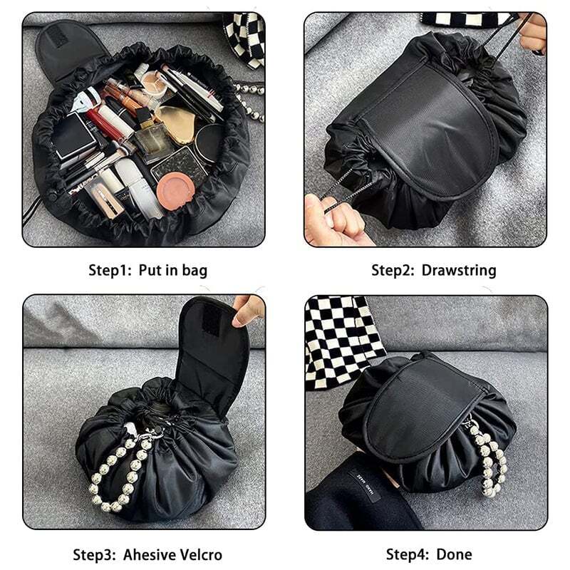 Convenient Design: The open flat design with a drawstring makes it easy to see and access your makeup. Just pull the drawstring, and it's ready to pack, giving you a tidy countertop, drawer, and bathroom in no time.