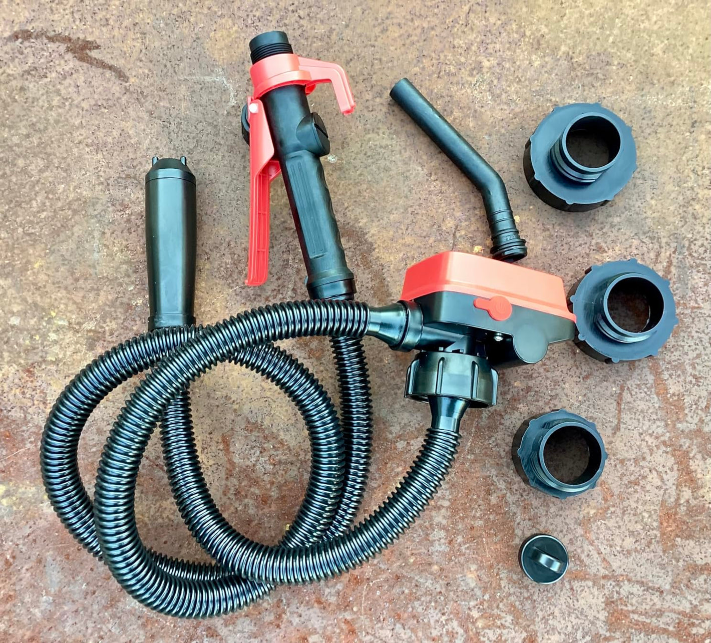 Includes three universal adapters (2.0", 2.5", 2.75") that fit most North American fuel cans and drums, making it the perfect gas pump for gas can setups. The 51-inch reinforced hose is flexible, rustproof, and leak-resistant, ensuring smooth, mess-free fueling every time.