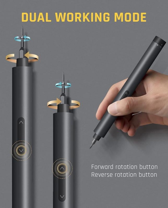 Unlike bulky power tools, this precision electric screwdriver is truly pocket-sized. The sleek design means you can keep it in your desk drawer, glove compartment, or even carry it with you.