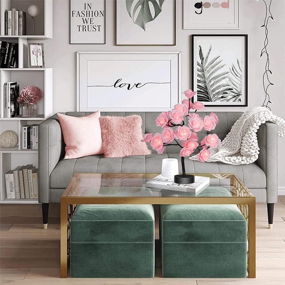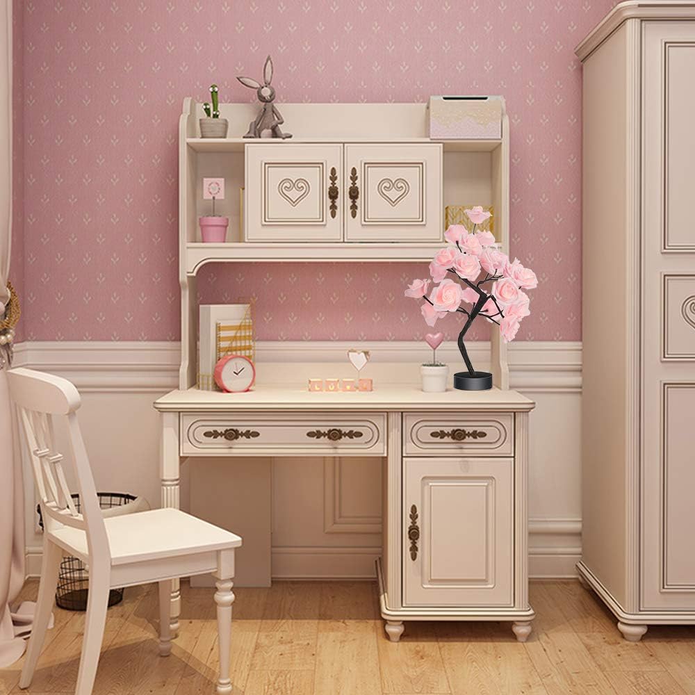 🌹💓Rose Flower Design Tree Night Light, USB Powered Table Lamp