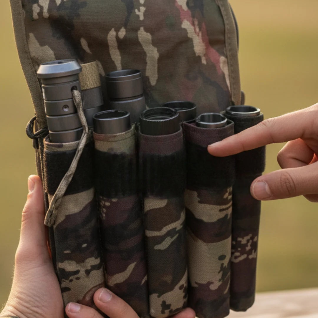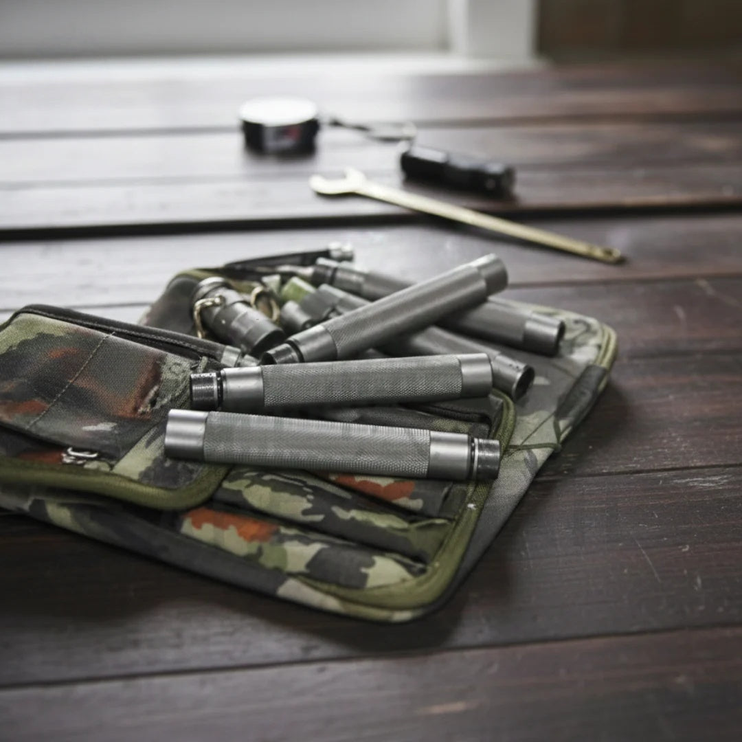 - Packs into a lightweight, organized canvas bag — never carry more than you need