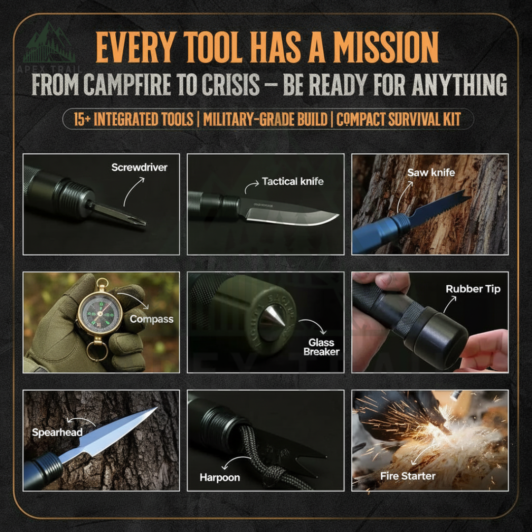 - Built for hiking, fishing, camping, defense, and real outdoor survival